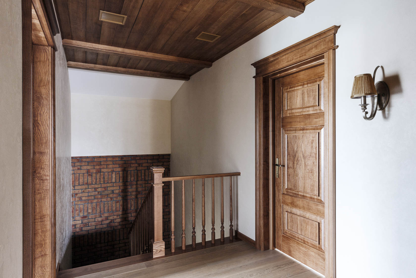 Staircase: ash massif tinted with dye and covered with Gloss 30 varnish
