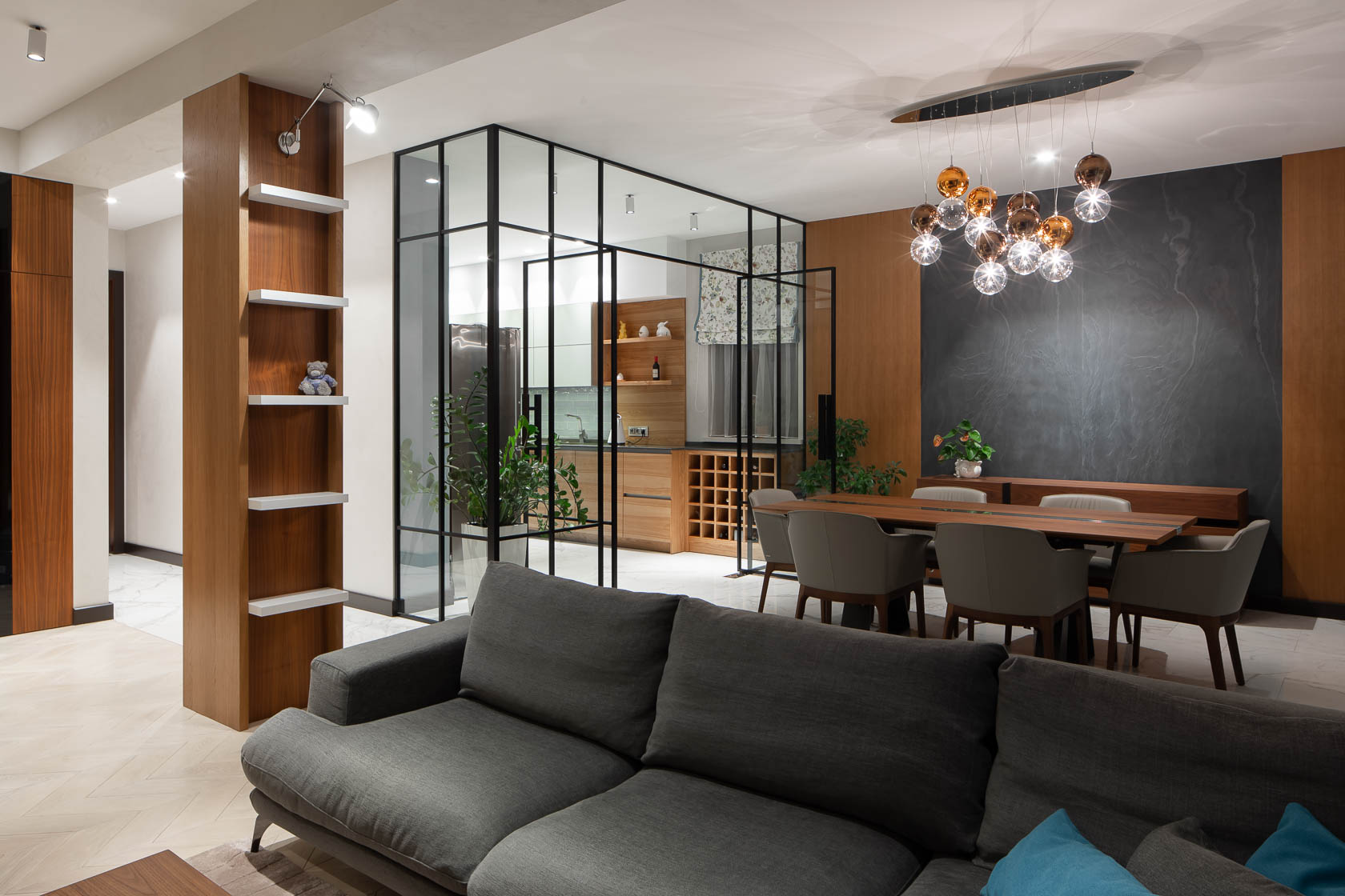 Veneered chipwood (ash veneer) covered with dye and varnish
